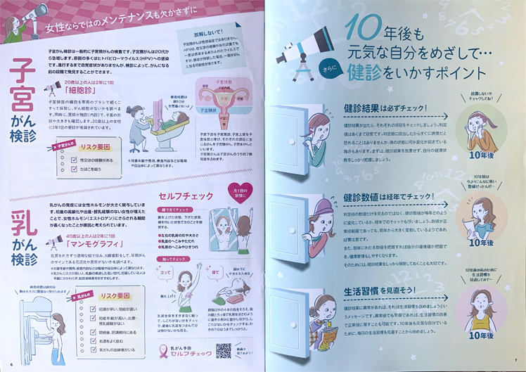 男女問わず、これからの自分の体のことを考えてもらい、ライフステージに合った健康診断をおすすめする冊子です。